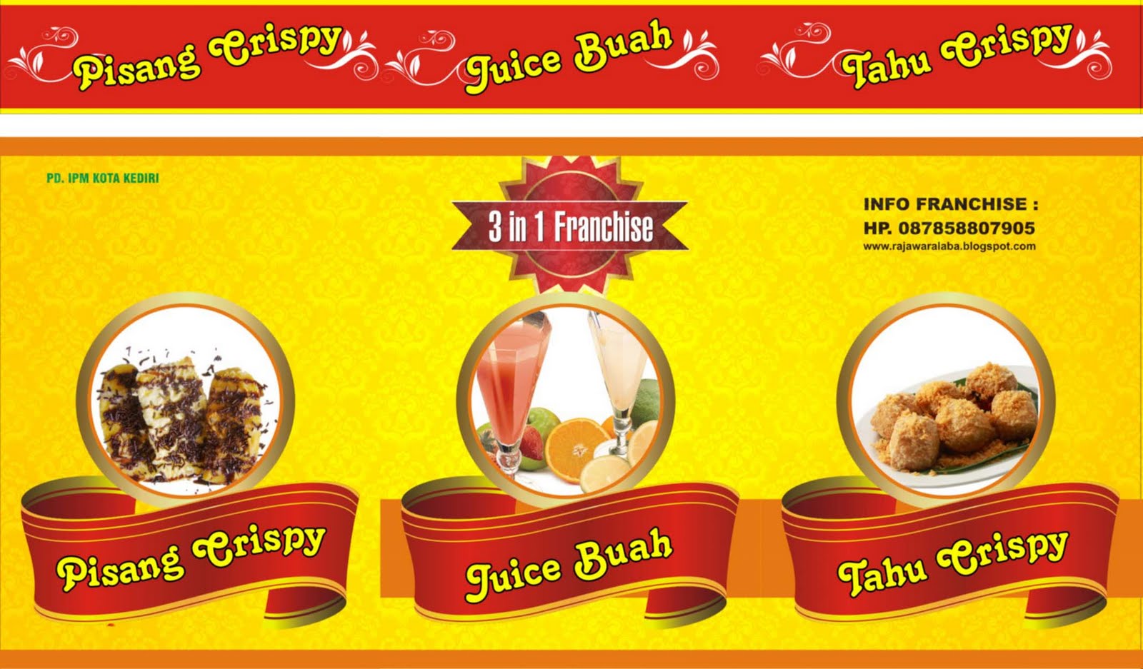 Dari namanya sudah dapat ditebak bahwa waralaba JUPITA 3 in 1 memang sebuah konsep bisnis baru di mana sebuah gerai/outlet terdiri dari 3 produk : Juice, Pisang Crispy dan Tahu Crispy. Terobosan baru 3 in 1 ini sengaja kami luncurkan demi efisiensi biaya sehingga dana investasi bisa ditekan relative lebih kecil, dengan kata lain meski dengan hanya satu gerai/outlet tetapi bisa menawarkan tiga jenis produk makanan dan minuman.